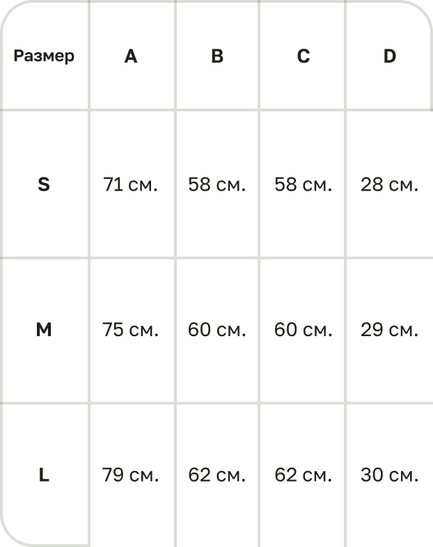 — Обхват груди: Измерьте обхват груди, обернув сантиметровую ленту вокруг самой широкой части груди. Лента должна быть параллельна полу и не слишком тугой.